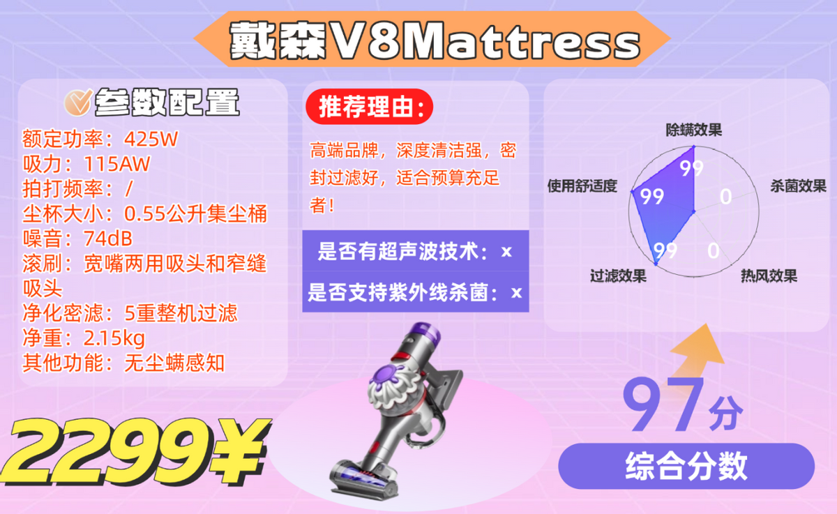 点评除螨仪 2:戴森 V8 Mattress推荐指数:★★★★★