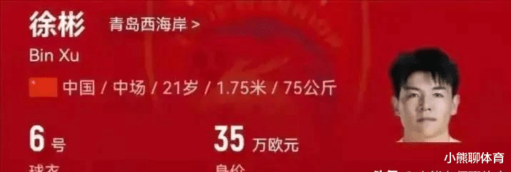 徐彬出自于广州恒大青训,今年效力青岛西海岸!