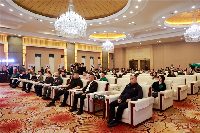 启动仪式环节,中国国际综合格斗联合会主席隗永华、内蒙格斗名将 敖日格乐、内蒙格斗名将、散打王宝力高、振华英雄创始人刘振华、鄂尔多斯市东胜区人民政府副区长乌云毕力格、鄂尔多斯市体旅文化发展有限公司代军、内蒙古恒翔达文化旅游有限公司董事长郝建军、内蒙古蒙泰集团有限公司党委书记、副总裁康维成共同触发启动装置,在全场热烈的倒计时声中,共同宣告“草原雄鹰之战”正式进入筹备快车道。随后,裁判员代表鲍辉庄严宣誓,确保了赛事的公平公正。一段展现蒙古族英雄气概的舞蹈《成吉思汗》,将现场氛围推向又一个高点。