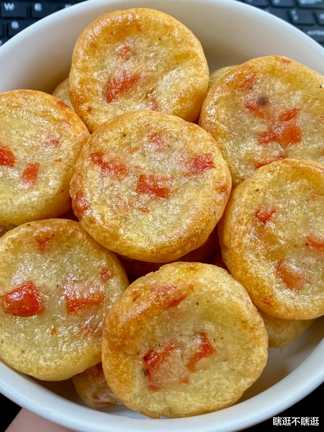 手心沾水防粘,取一团混合物压成1cm厚的小饼。平底锅刷薄油,小火煎至两面金黄(约3分钟/面)。关键点:一定要等一面定型再翻面,用锅铲轻推能滑动就是好了。
