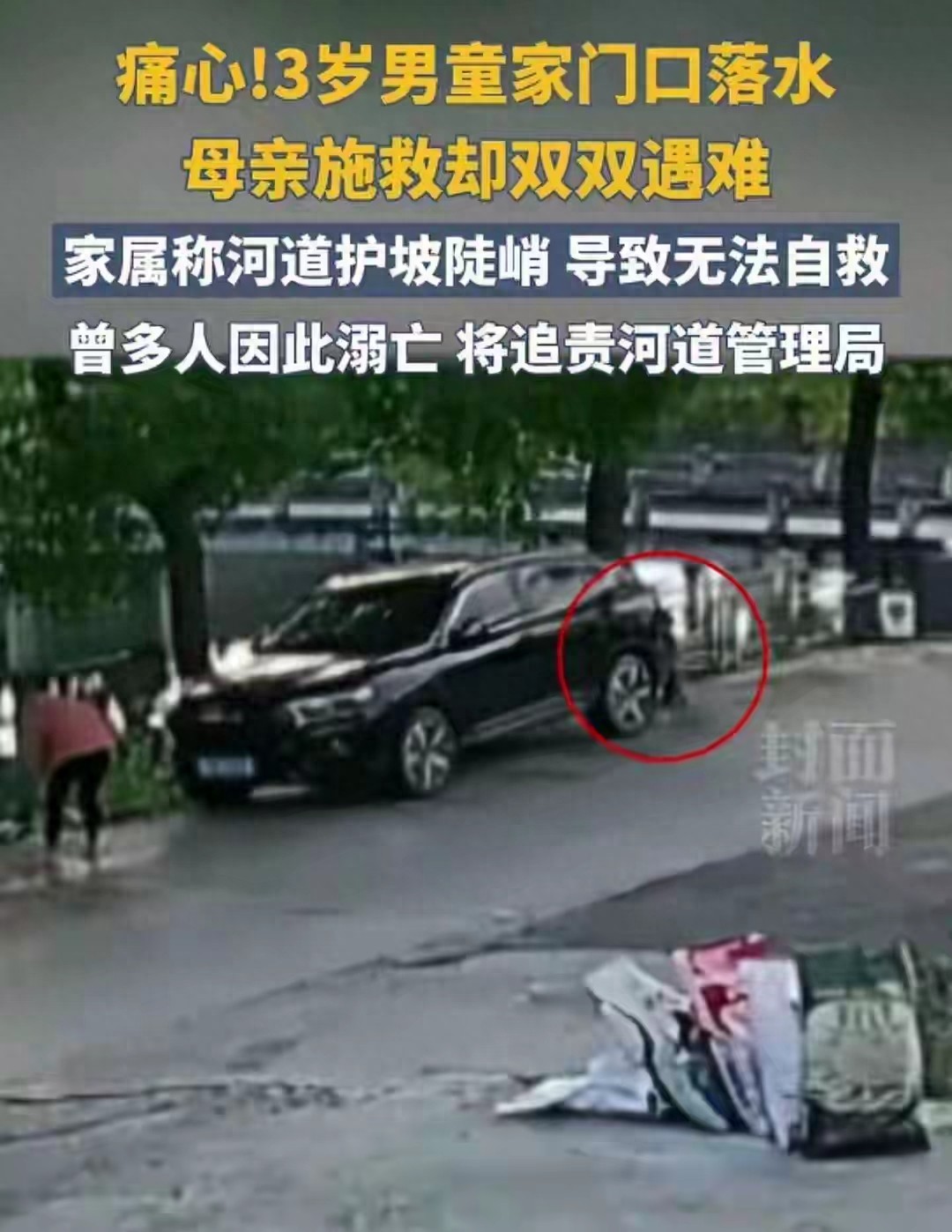 事发时,孩子的父亲刚外出打工不久,家中老人在镇上务工,左邻右舍也都忙着各自的生计,没人听到这撕心裂肺的呼喊。等亲友发现异常赶到河边时,只看到空荡荡的河岸和湍急的河水,最终,母子俩的遗体被打捞上岸,这场家门口的意外,终究没能留下一丝余地。 陡岸藏“杀机”,清淤河道竟成“夺命陷阱” 原以为只是一场令人惋惜的意外,可随着更多细节曝光,大家才发现,这场悲剧早已埋下隐患。 据家属江先生介绍,出事的河道早年进行过清淤疏浚工程,原本较浅的河水被挖至两三米深,河岸边铺设了石砖护坡,看似加固了堤岸,却因坡度陡峭,成了“吃人”的陷阱 。“那石砖沾了水比油还滑,成年人掉下去都抓不住、爬不上来,更别说还要抱着孩子了!”江先生哽咽着说,这条河之前就发生过溺亡事件,只是没能引起足够重视。