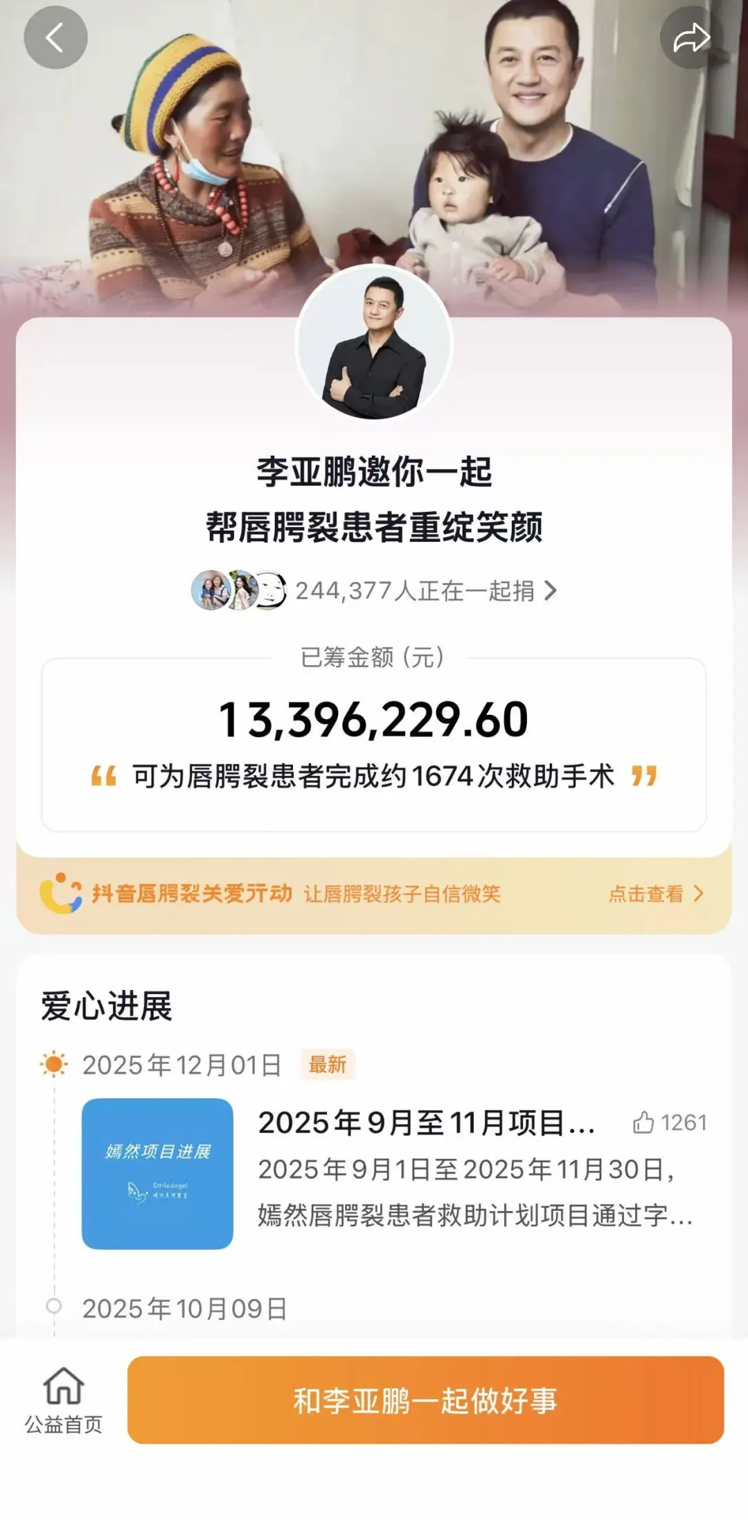 捐款热潮视频发布后,“给嫣然天使基金捐款”成为网络热点。网友们涌入李亚鹏抖音平台寻找“嫣然唇腭裂患者救助计划”捐款入口。