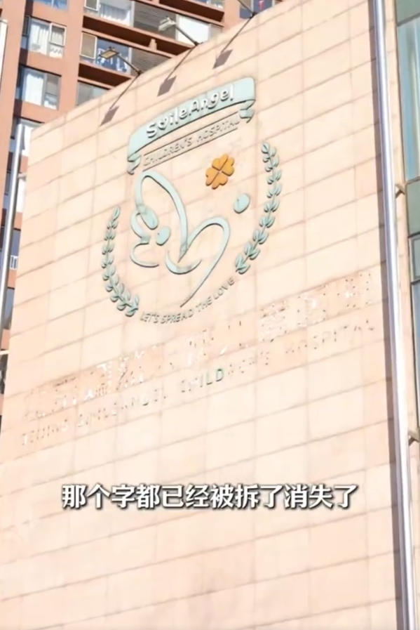 医院外墙上,“北京嫣然天使儿童医院”十个大字被拆掉了,只留下淡淡的痕迹。