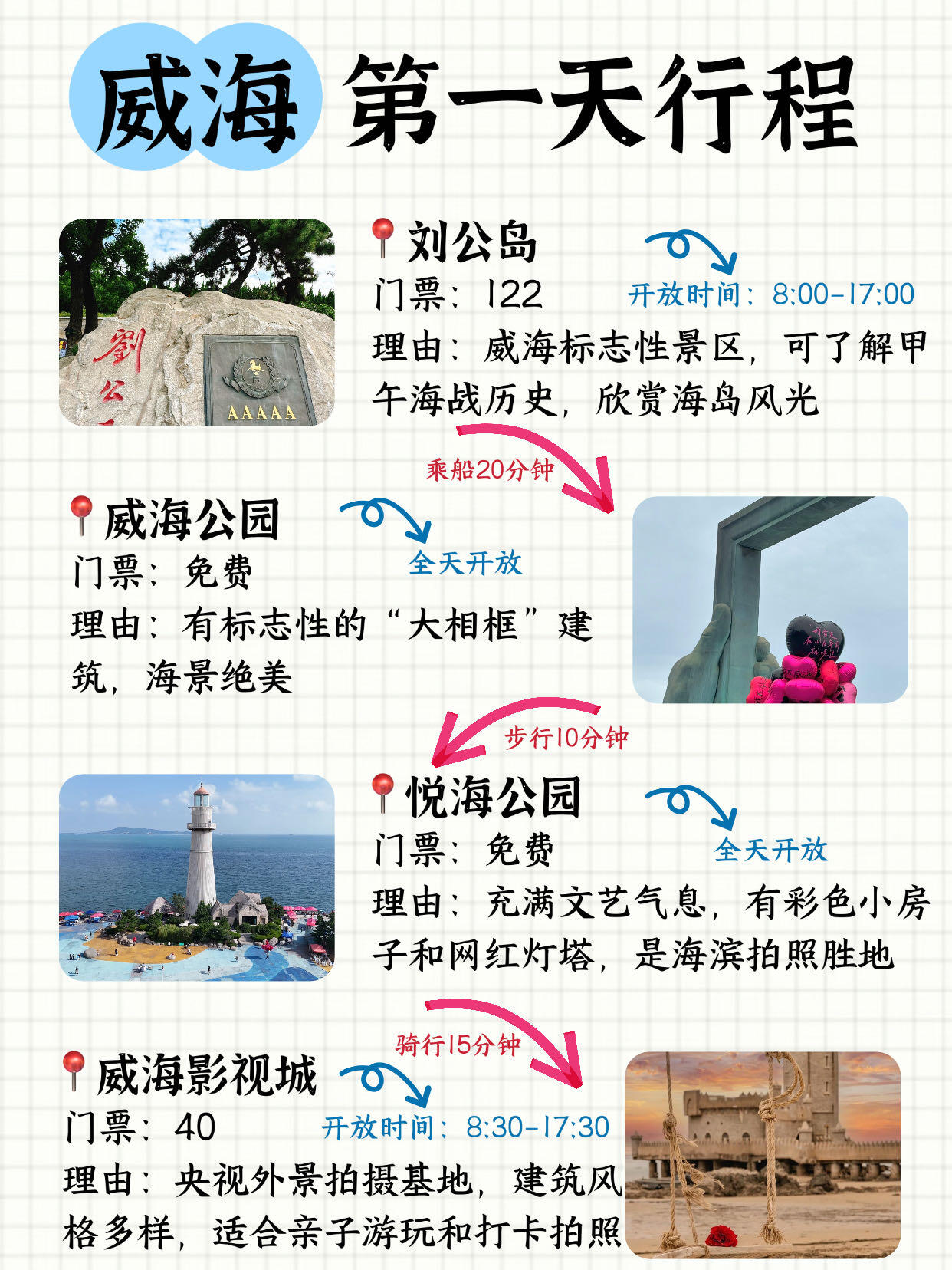 刘公岛 ➡️ 威海公园 ➡️ 悦海公园 ➡️ 威海影视城