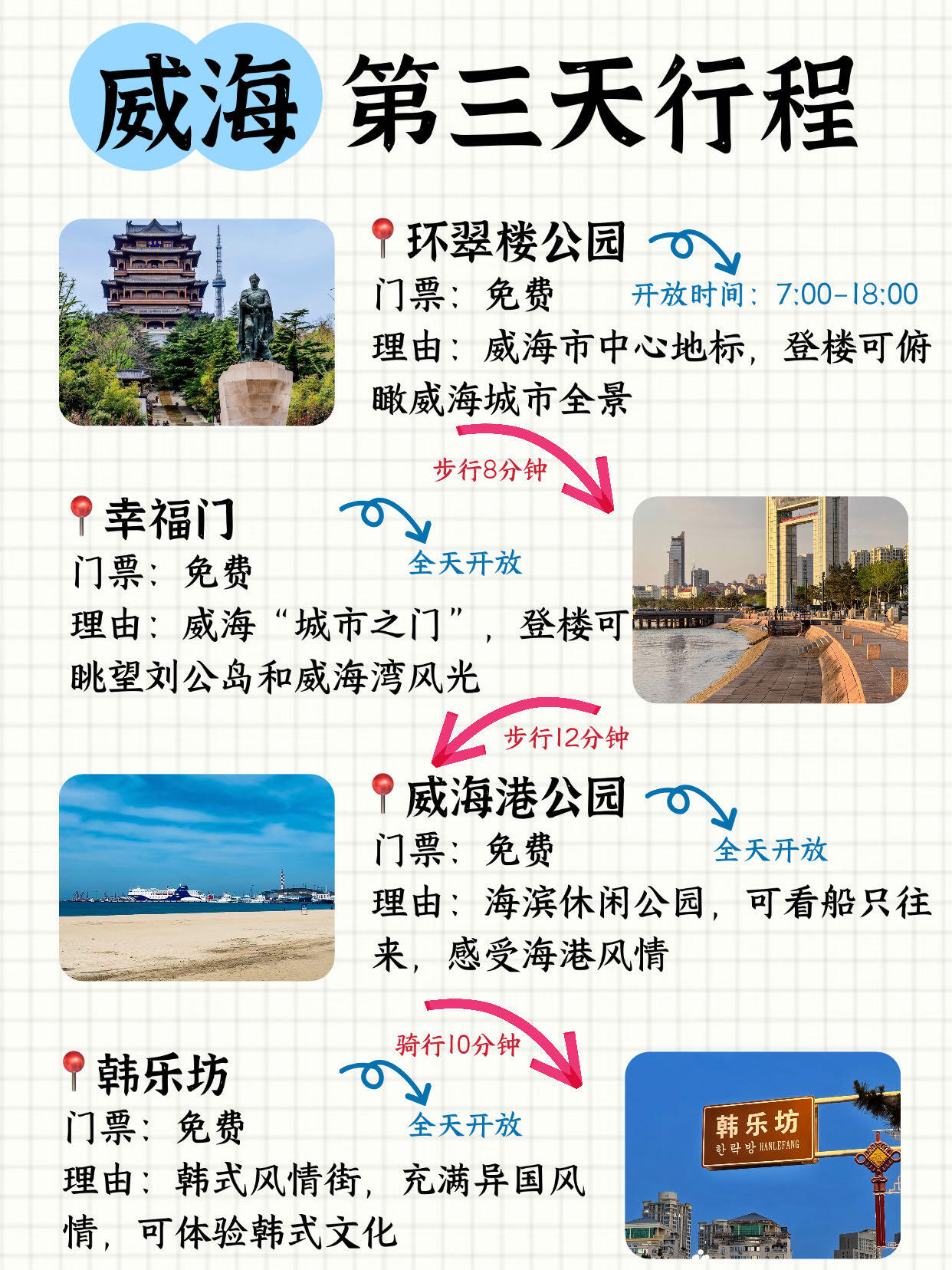 环翠楼公园 ➡️ 幸福门 ➡️ 威海港公园 ➡️ 韩乐坊