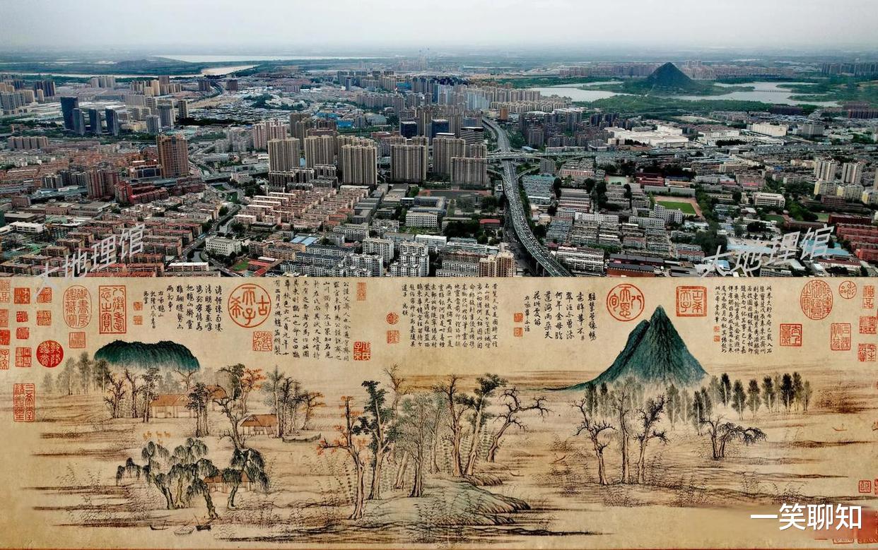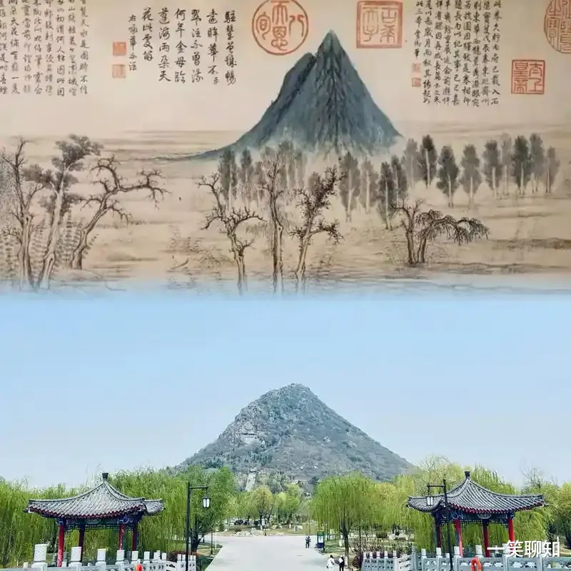 赵孟頫早知周密祖籍济南有对"双子星"——鹊山与华不注山。偏巧他当年游历过这两处,便凭着记忆将双峰同框入画,当作"故乡明信片"赠予周密解乡愁。