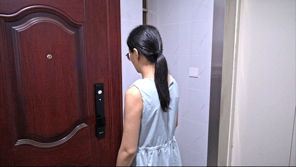 走到门前时,锁已经完成识别并解锁,只需抬手往后拉把手即可进门,整个过程不到1秒。