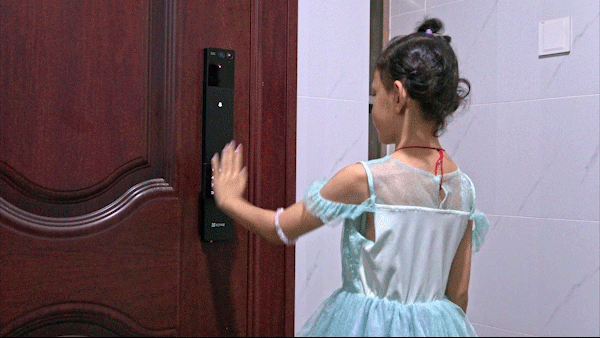 它采用了萤石自研的双目人脸识别模组,支持1.1-2米身高范围识别,实测家里1.3m的大宝以及1m的小宝都可以使用人脸顺畅开门,完美解决了家中老人指纹磨损和小孩身高不足的问题。