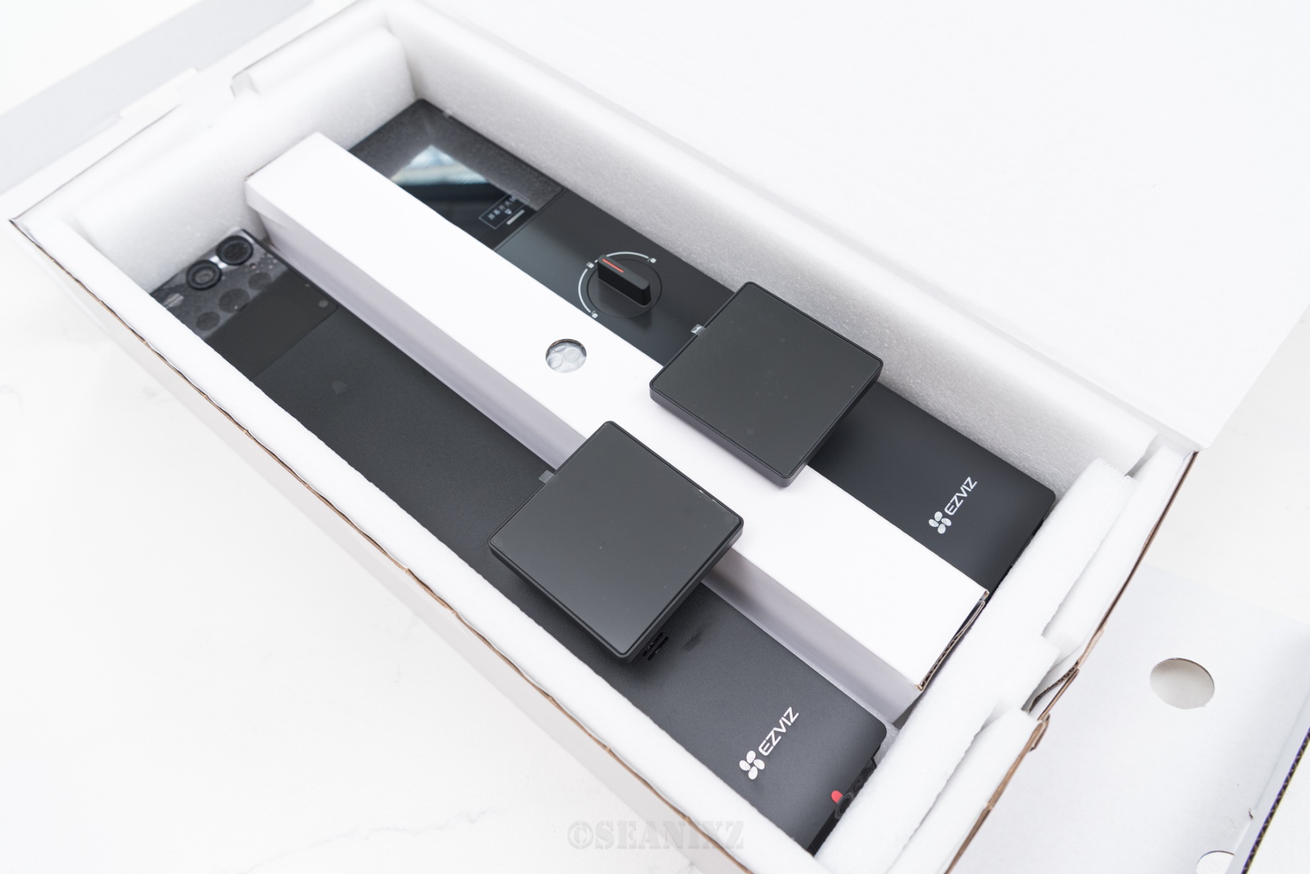 萤石还贴心地配备了防撞贴和防夹手提醒标签,这种细节充满了人文关怀,厂商还是非常用心的。