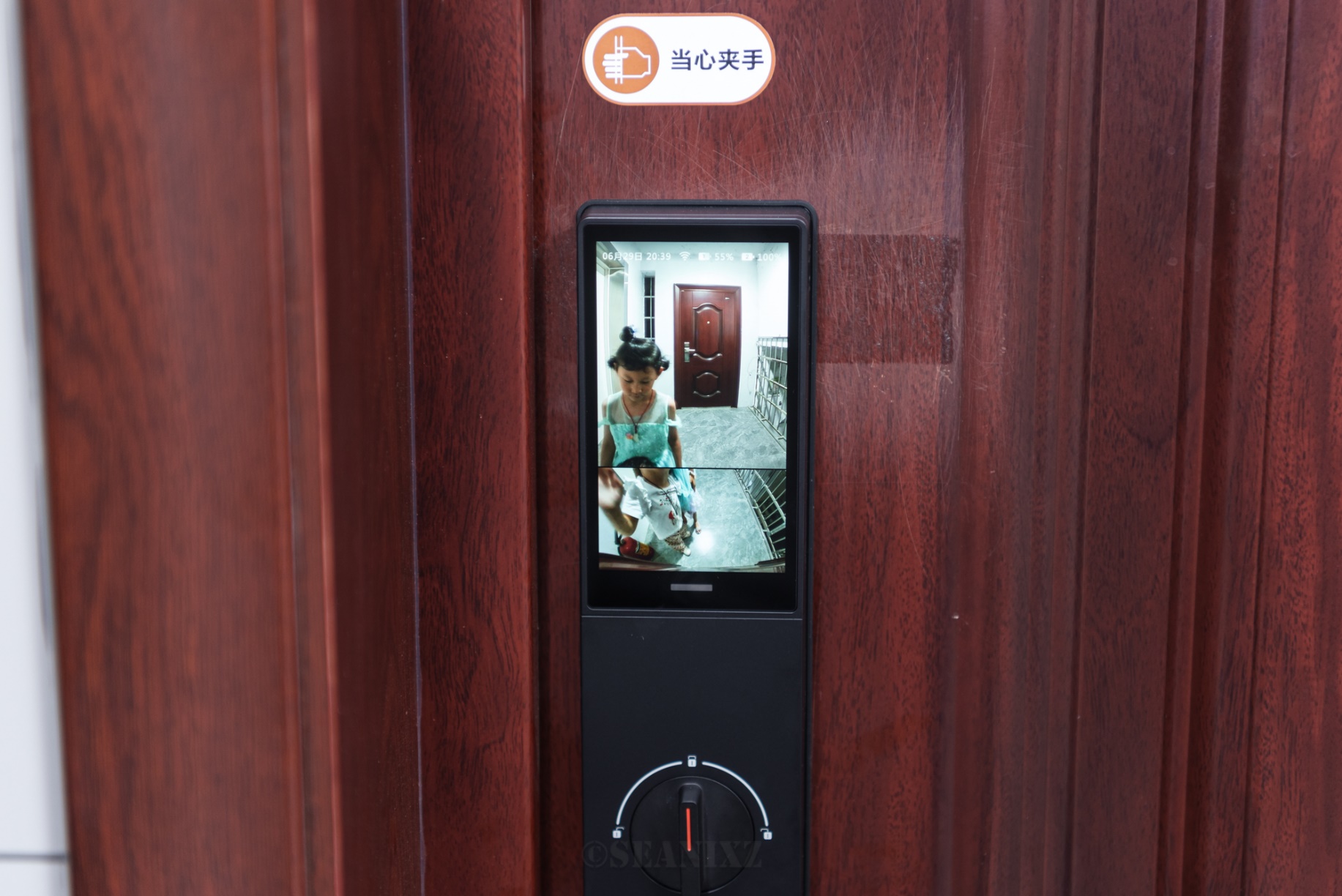 实测上摄可以清晰的拍出人脸,下摄角度可以贴着门缝看到地面情况,比较矮的小宝也能很好地捕捉到,双摄组合带来了几乎无死角的安全防护,通过手机APP也可以随时查看门前情况,给老人孩子带来了极大的安全感。