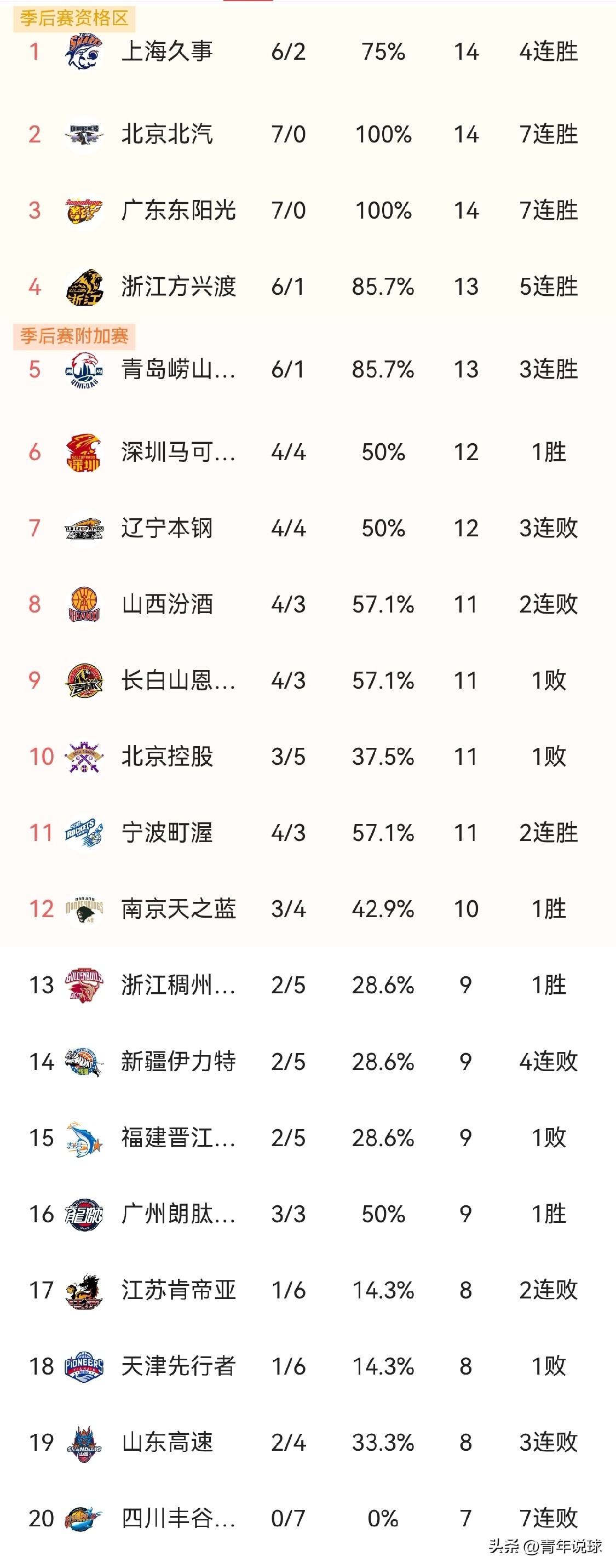 赢球后的深圳战绩来到了4胜4负,胜率来到了50%,暂时排名积分榜第6位;辽宁遭遇3连败,战绩同样来到了4胜4负,暂时排名积分榜第7位。
