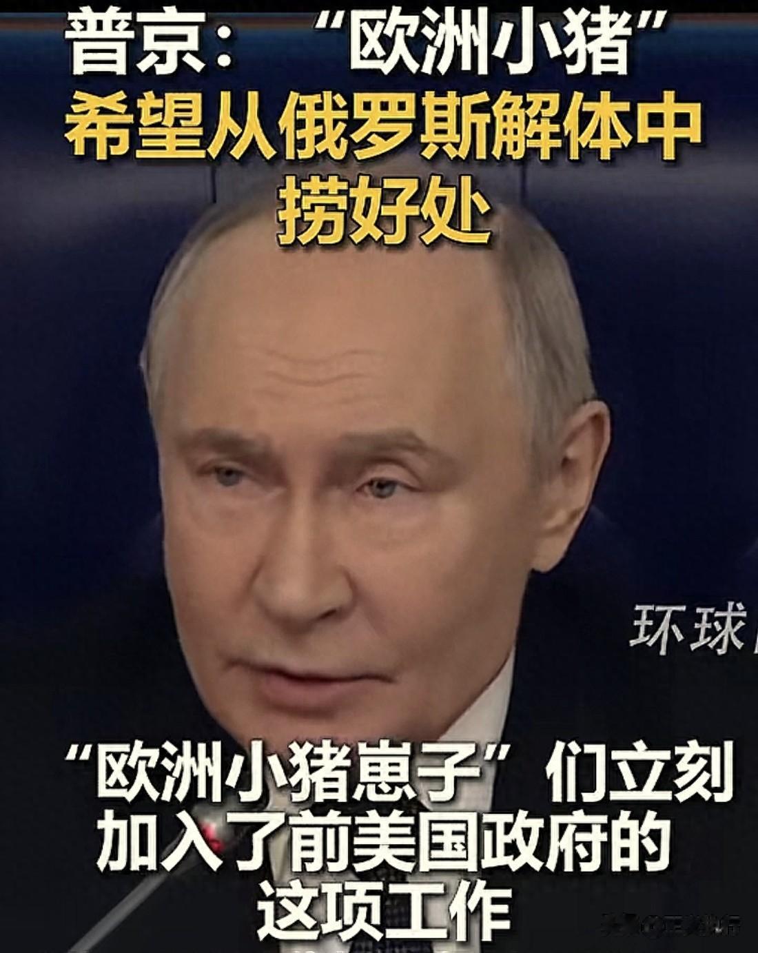 其实,欧洲就是希望俄罗斯解体,然后无偿享受俄罗斯石油、天然气、森林、海洋鱼类产品资源!给腐朽的资本主义高福利社会续命!因为,苏联解体时欧洲就已经吃了一波红利,有了前车之鉴,现在的俄罗斯肯定不会再次走上老路。虽然,现在普京在面对欧洲时有他的原则和底线。但是,在视频中看到普京总统的样子,真是已经老了,毕竟是73岁的古稀之年了。