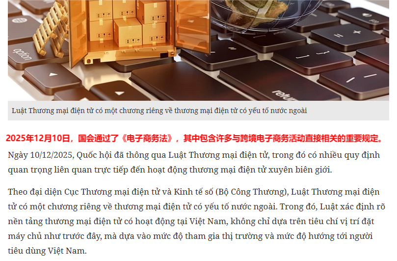 今年,越南国会通过了《2026-2030年电子商务发展总体规划》及该国首部《电子商务法》,标志着行业进入更规范的法治化轨道。