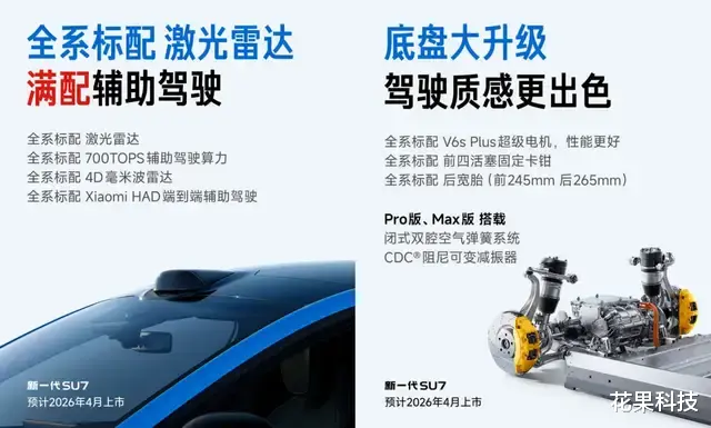 雷军表示,新一代 SU7 安全进一步增强,全系标配激光雷达,辅助驾驶全部满配,全域碳化硅高压平台。