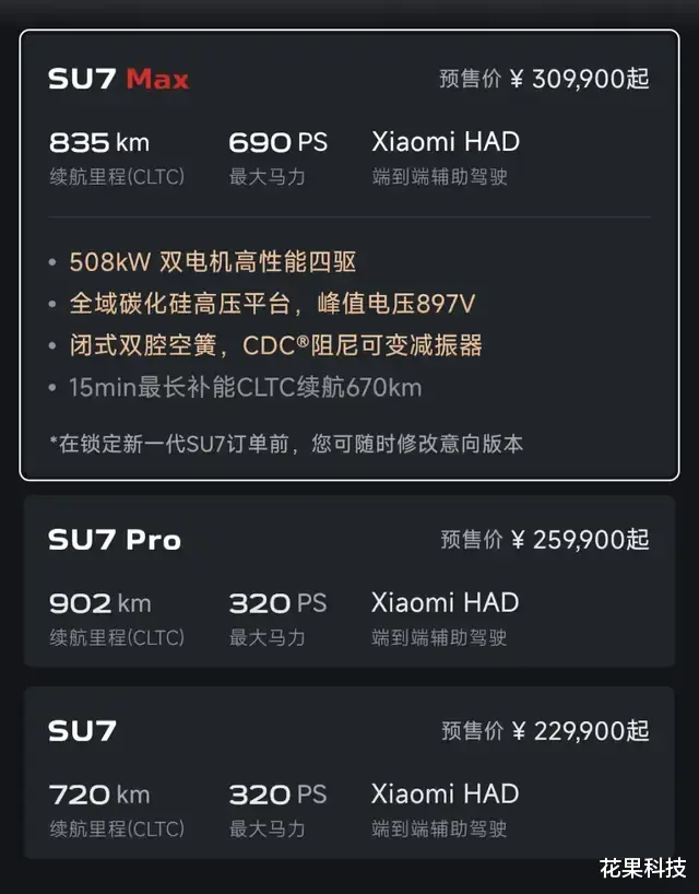 ■ SU7 Max: 30.99 万元起