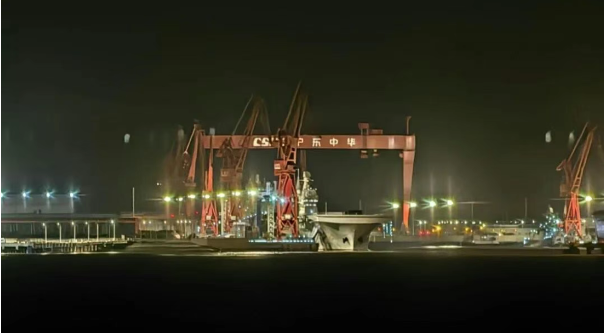 中文网络上疯传的照片捕捉到造船厂和四川舰的舰桥灯火通明的景象,显示晚间有活动进行。四川舰上最先进的发射系统,正面向长江的开阔水域,而不是船坞内部。