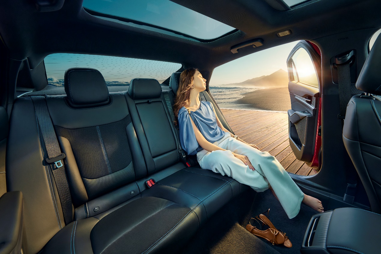 福特新蒙迪欧以近5米车长与2945mm轴距打造出二排近1米的“大五座”腿部空间,配合0.94㎡超大全景天窗、丹麦B&O音响与吸入式座椅通风加热系统,营造出移动的“豪华大平层”。后排座椅支持多挡位调节与放倒,后备箱空间可在520L至1550L之间自由切换,满足家庭出行与休闲旅行的多元需求。