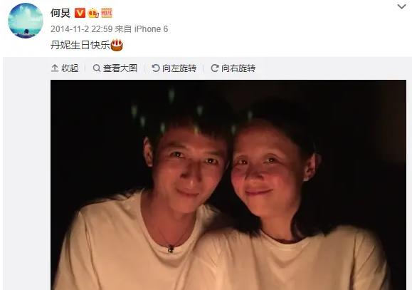 2014年龙丹妮生日时,何炅公开发布她与李维嘉身着同款情侣装的亲昵合照。