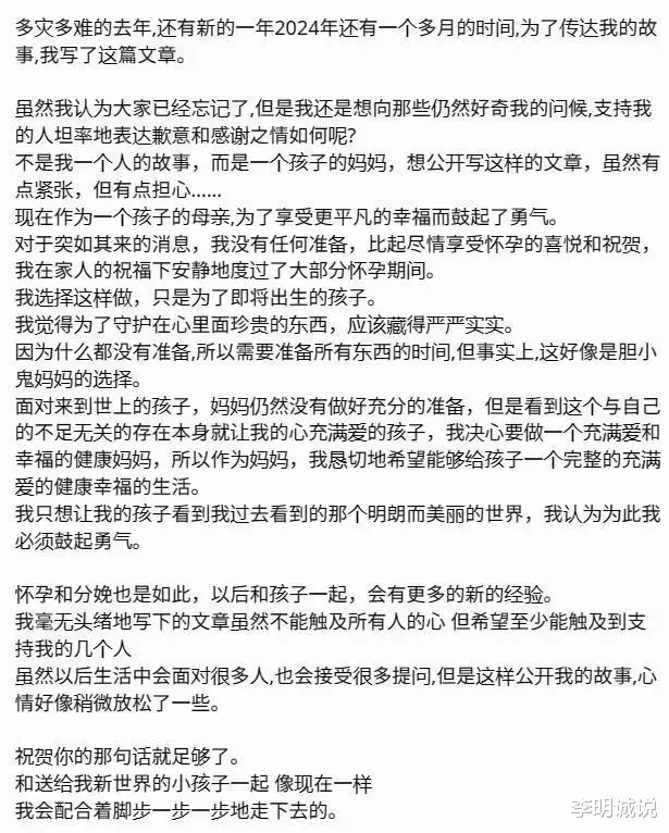 "我想分享一个妈妈的故事……"两天前,文佳菲在社交平台发布长文,字里行间透露着紧张和期待。这篇杂乱无章的自白,像极了一位初为人母的手足无措,又像是一封意有所指的公开信。