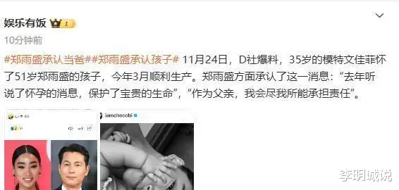 真相来得猝不及防!郑雨盛经纪公司火速回应:"去年听说怀孕消息,保护了宝贵的生命。"这简短的声明,引发了轩然大波。