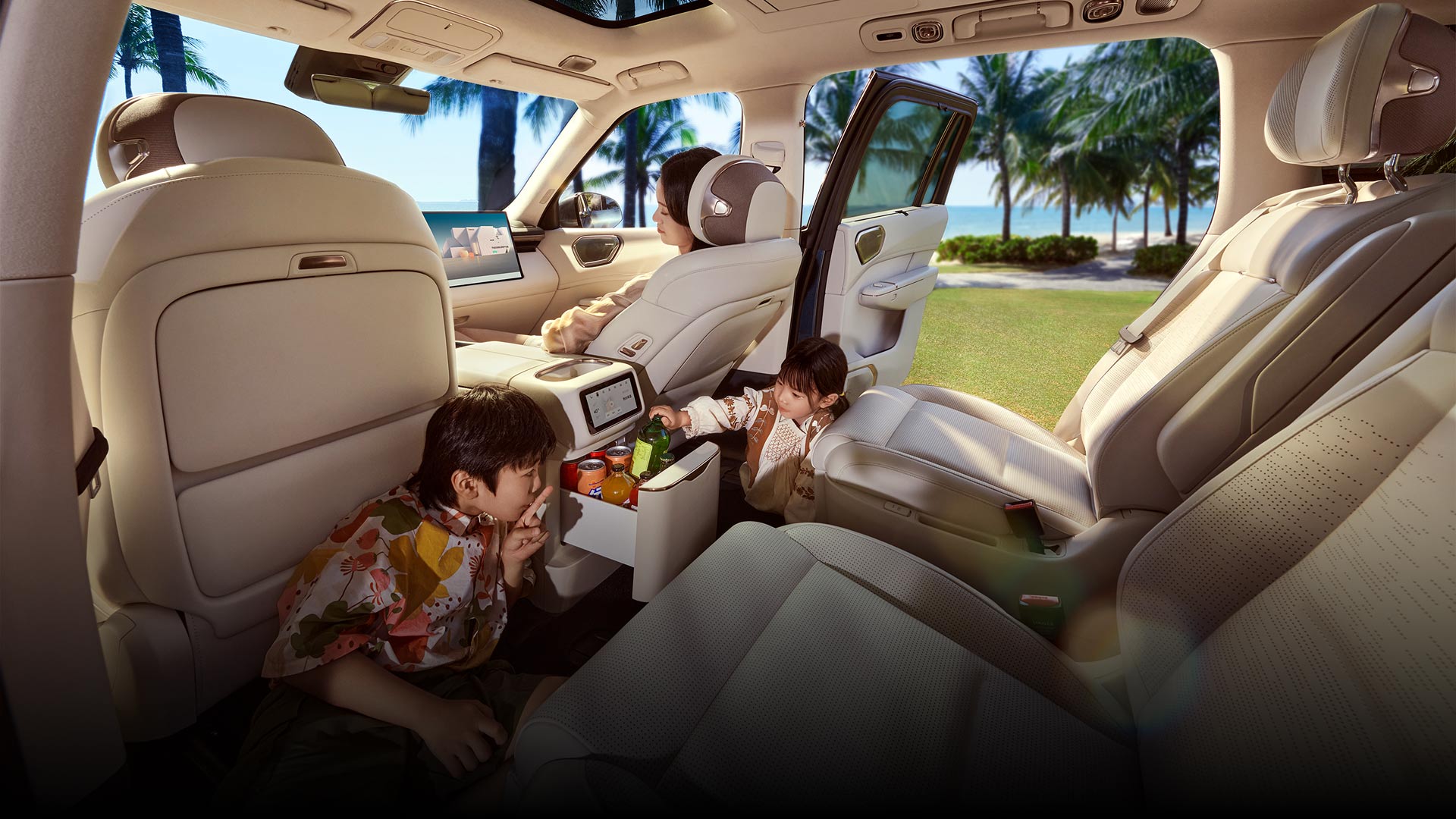 领克900对“豪华”的理解,是让每一位家庭成员都被平等对待。三排座椅均配备了加热和按摩功能,配合全车高品质音响系统与前后排双巨幕,确保了无论坐在哪个位置,都能享受到一致的舒适与娱乐体验。这种“全员平权”的理念,让豪华超越了材料的堆叠,拥有了情感的溫度。双高通8295芯片提供了强大的算力支撑,使得车机系统操作流畅,语音交互响应迅捷,前后排屏幕既可独立运行,也能共享内容,灵活适应家庭出行中不同成员的个性化需求。