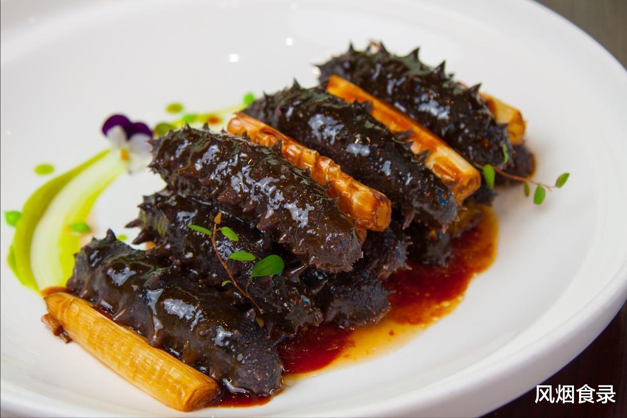 黑褐酱汁裹着海参,入口先觉葱香奔涌,