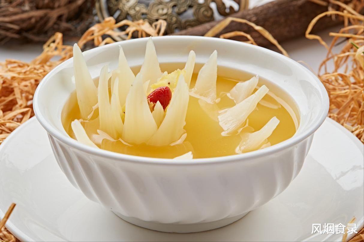 这菜,是拿老母鸡、火腿、干贝吊出高汤,再用鸡茸扫汤,清得像开水的汤,