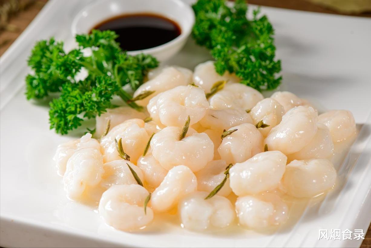 虾仁取清明前狮峰龙井嫩芽同炒,虾肉玉白鲜嫩似豆蔻,咬开爆汁;