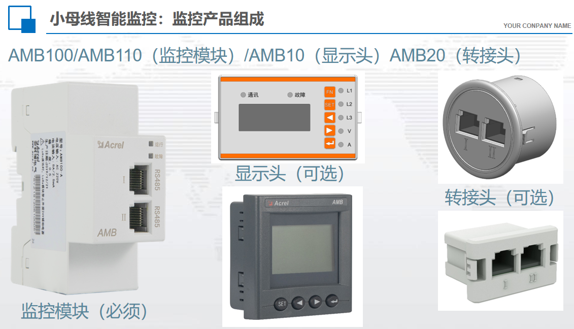 在每条小母线的始端箱、插接箱部署AMB100模块,实时采集电力参数与插脚温度。