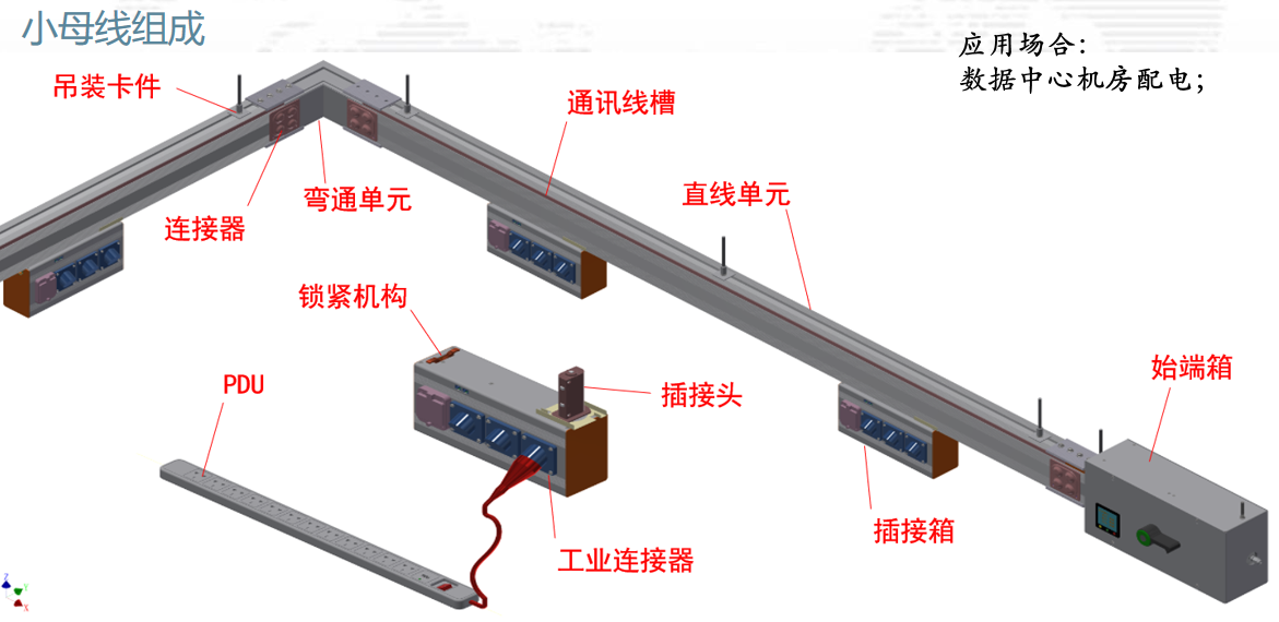 数据中心小母线是一种为数据中心IT机柜提供电力分配的新型母线系统,也常被称作机柜式母线或列头小母线,是传统配电柜+电缆供电方式的替代方案,核心作用是实现数据中心内电力的灵活、高效、安全分配。它的主要作用是为机柜内的设备提供集中、高效和灵活的电力分配。与传统的电缆布线方式相比,它能够实现快速部署。在数据中心建设或扩容时,无需大量的电缆敷设工作,节省了安装时间和人力成本。同时小母线具有良好的扩展性。随着机柜内设备的增加或变更,只需简单地增加插接箱即可,无需重新布线。小母线能够提供更高的供电可靠性。由于其结构紧凑、连接可靠,减少了故障点,降低了停电风险。便于维护和管理。通过监控系统,可以实时监测母线的电压、电流、功率等参数,及时发现并处理潜在问题。