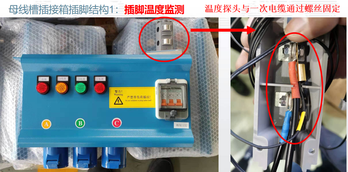 测量母线槽连接处、变容节、转弯处等位置温度,将温度数据上传至监控平台