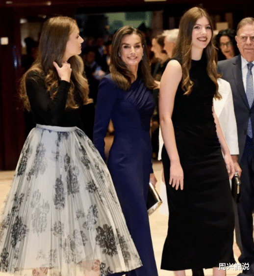 莱蒂齐亚王后身着前所未见的紧身礼服,与长相相似的女儿们走在一起,魅力四射!