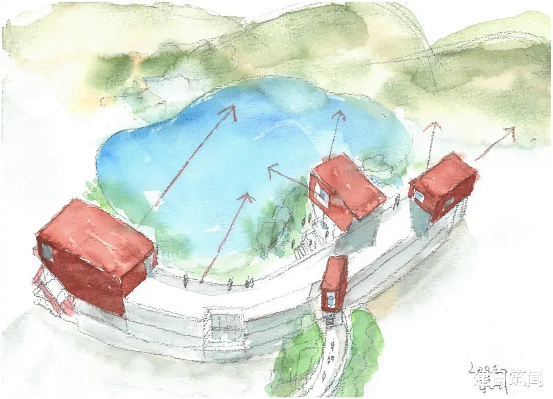项目选址于泉州双阳隧道口近泉州高铁站,地处清源山北麓生态廊道的关键节点。基地呈南北狭长走向,东南侧现存灌溉湖面,与南向双阳山形成“近水远山”的视觉通廊。原始地貌中2米高差形成的台地肌理,暗含了传统闽南聚落“依山就势”的营造智慧。通过无人机测绘发现,场地与双阳山主峰构成恰到好处的仰角视域,恰是宋代郭熙《林泉高致》中“平远”与“高远”的观景阈值,为建筑场域的空间渗透埋下伏笔。