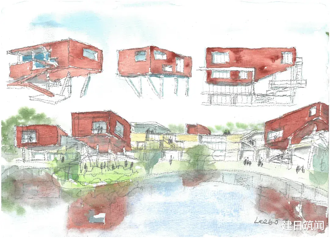 屋顶花园通过覆土建筑技术,将适宜本地生长的植被和树木引入第五立面,形成“空中生态岛”(暂未实施)。