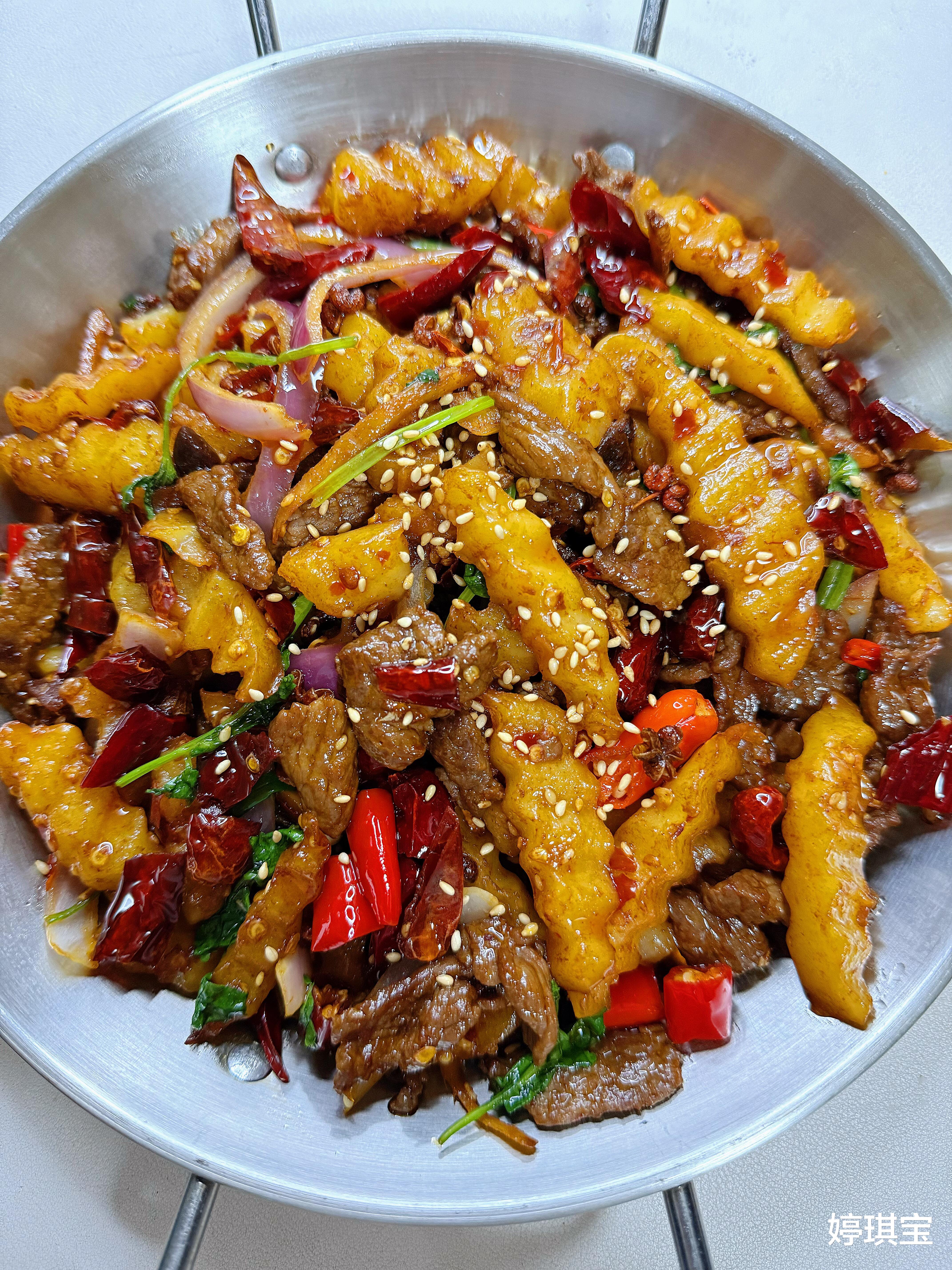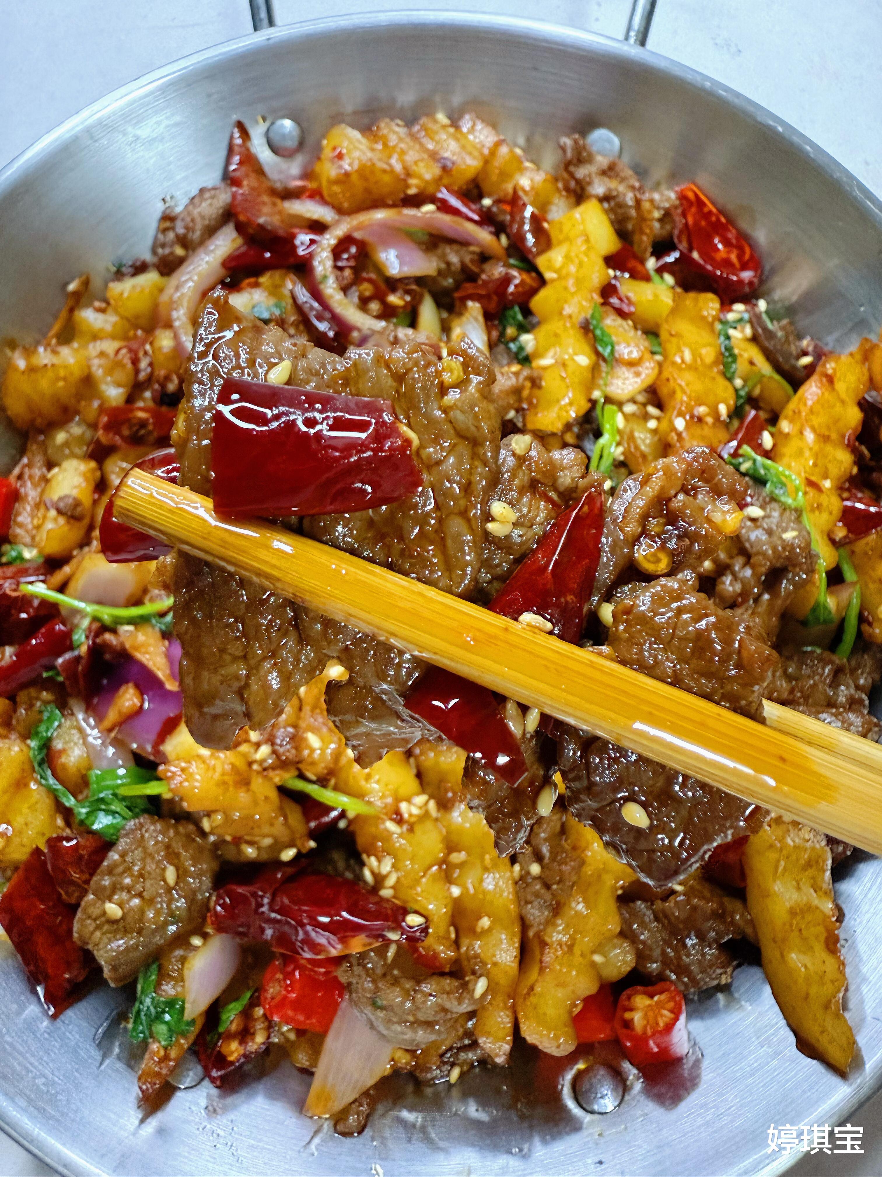如今,这道菜成了我家的"冬日暖锅"。每当寒风凛冽时,做一锅干锅牛肉,满屋的麻辣香气能驱散所有寒意。女儿总说:"妈妈的干锅牛肉,是装在铁锅里的暖气片!"