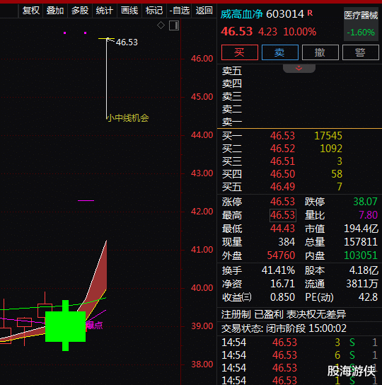 从技术面上来看,威高血净(603014)该股在板块的带动下,2天2板!2个交易日股价上涨了21%!均线呈现多头排列,MACD有继续上扬的动力,主力资金净流入1.51亿元。