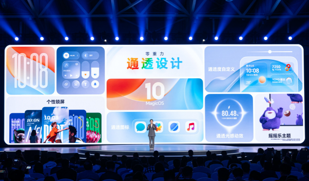 随着用户对设计审美品位的不断提升,MagicOS 10引入“零重力通透设计”,依托行业首创的“通透引擎”及其三大核心技术——通透材质自适应、内容解析与重组、轻负载架构,实现了从锁屏、桌面到应用内的全局通透视效。系统在保持通透视觉效果的同时,还做到了功耗零增长,真正兼顾美学与性能,让主题不仅好看,更实用易用。