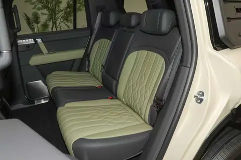 在空间方面,猛士M817也有着让人满意的表现。车内采用了大量的软质材料和Nappa真皮座椅,触感细腻,乘坐舒适。同时,车内空间宽敞,无论是前排还是后排,都能为乘客提供充足的头部和腿部空间。让人欣喜的是,主副驾放倒可形成1.7米双床,后排放平与后备厢衔接成2.1米大床,床面平整,成床高度0.9米,在户外旅行时,可为我们越野爱好者提供舒适的休息空间。后备厢常规容积828L,二排放倒可拓展至2112L,能够轻松装载各种行李和装备,W全可以满足日常出行和越野旅行的需求。无论是我们一家人的长途旅行,还是装载越野所需的帐篷、炊具等物品,猛士M817的空间都能轻松应对。