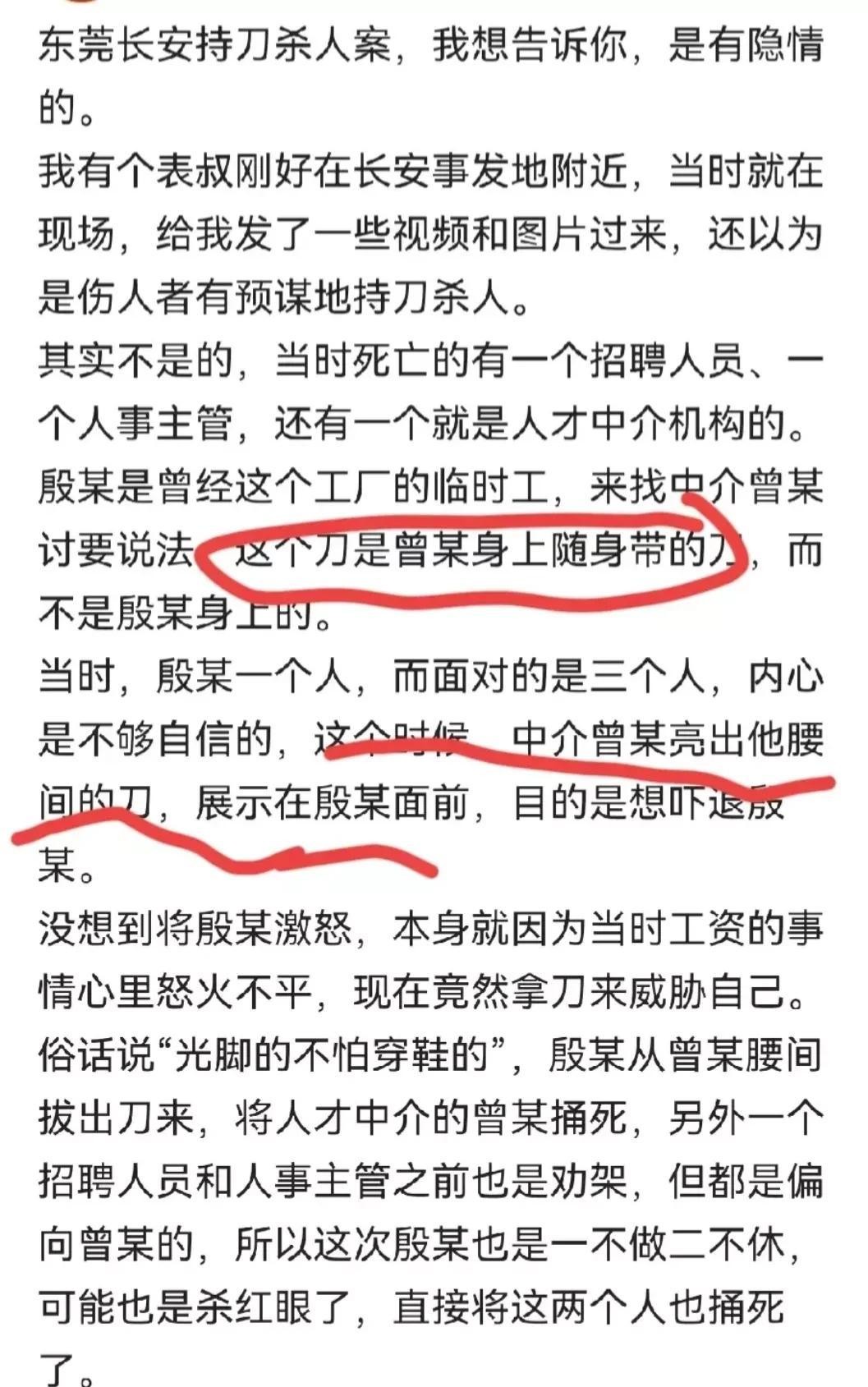 近日,东莞长安杀人案引发大家的热议,嫌疑人殷某刀刀致命,连伤三人,大家对这背后的原因很是好奇,嫌疑人殷某这是有多大的仇多大的怨才做出这等犯罪的事情,随着网传更多细节的曝光,我们也知道了这是因为嫌疑人殷某索要3600块钱的工资而引发的血案。