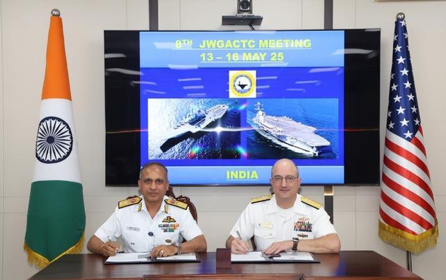 在印度航母退走之后,美国海军马上上门。根据印度媒体在5月21日的爆料,美国借着所谓“印度-美国国防技术与贸易倡议”,成立了一个“印度-美国航空母舰技术合作联合工作组”,其第八次会议于2025年5月13日至16日在印度举行。美国海军派出一支6人代表团,由美国海军少将凯西·莫顿率领访问了印度。在2025年5月13日在新德里举行的联合工作组开幕式,双方声称是在航空母舰领域开展的“宝贵信息交流”,还在果阿进行了“专业交流”。