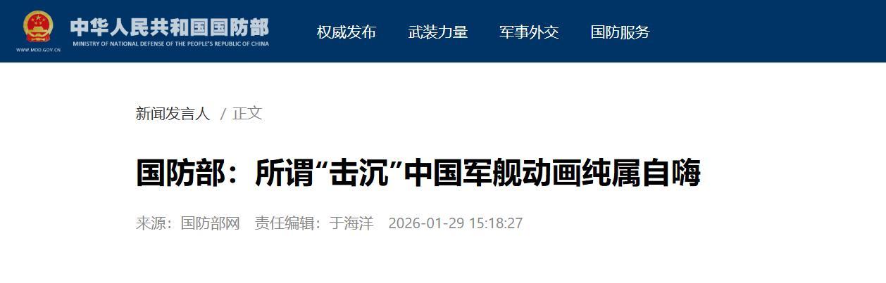 2026年1月的国防部记者会上,发言人蒋斌大校用一句英文轻松回应四国最新发布的“击沉中国军舰”动画视频。而这句略带幽默的回应,也是直接告诉4国“想得美”!