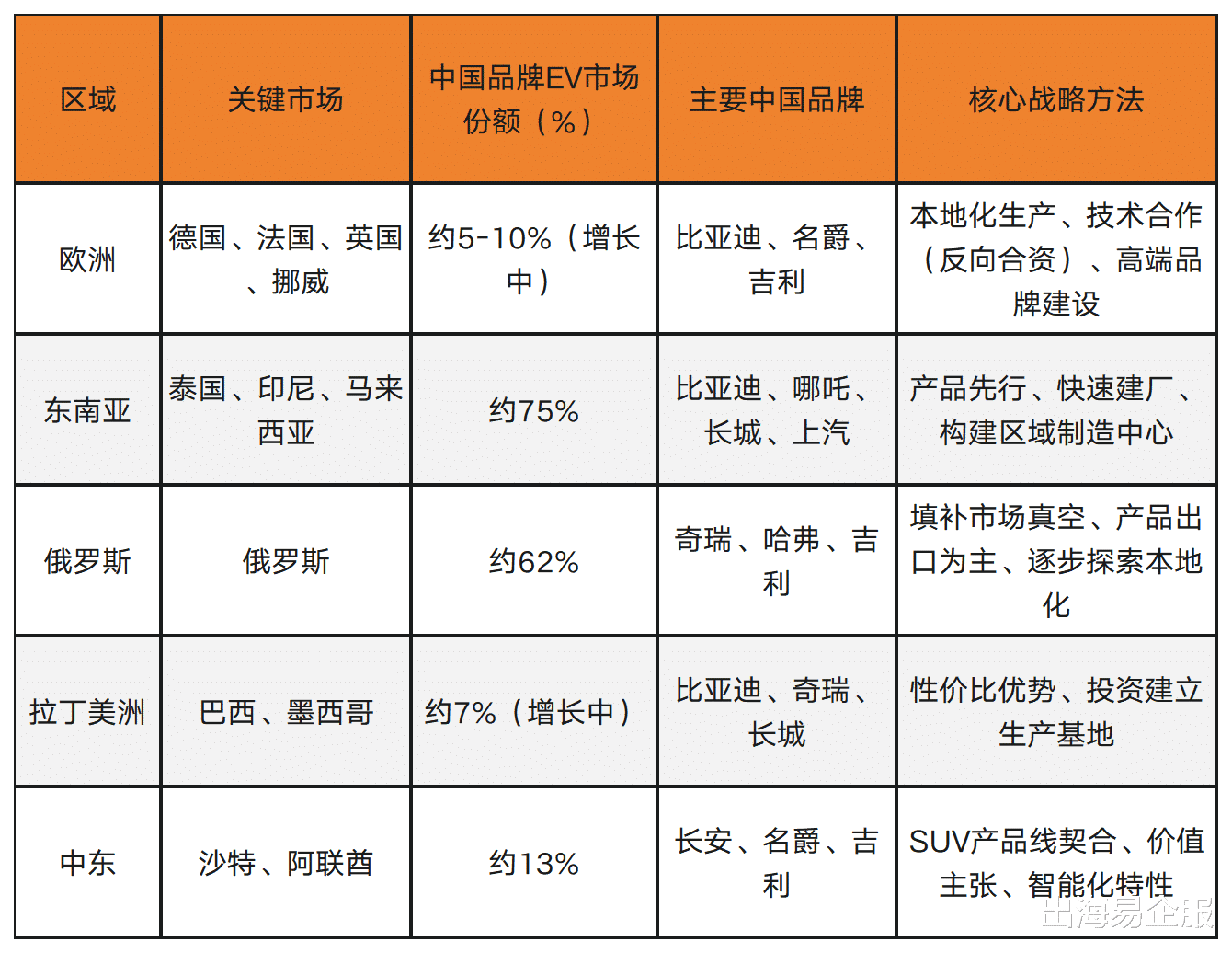 中国主要品牌在关键海外区域的市场表现与战略(2024-2025年数据)