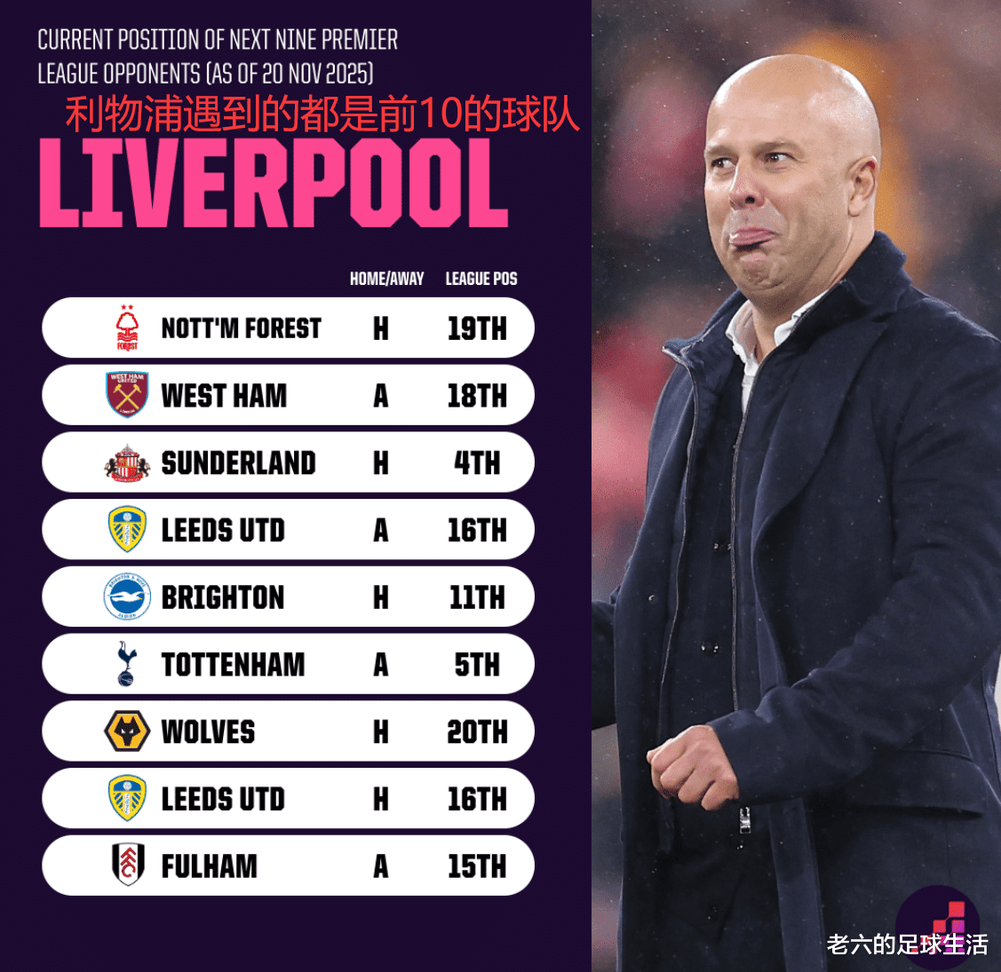 这其中原因之一是利物浦遇到的对手都是实力强劲的球队,他们与英超前10名中的其他7支球队都已经交过手了,但考虑到他们上赛季的表现,球队的状态下滑是肯定的。