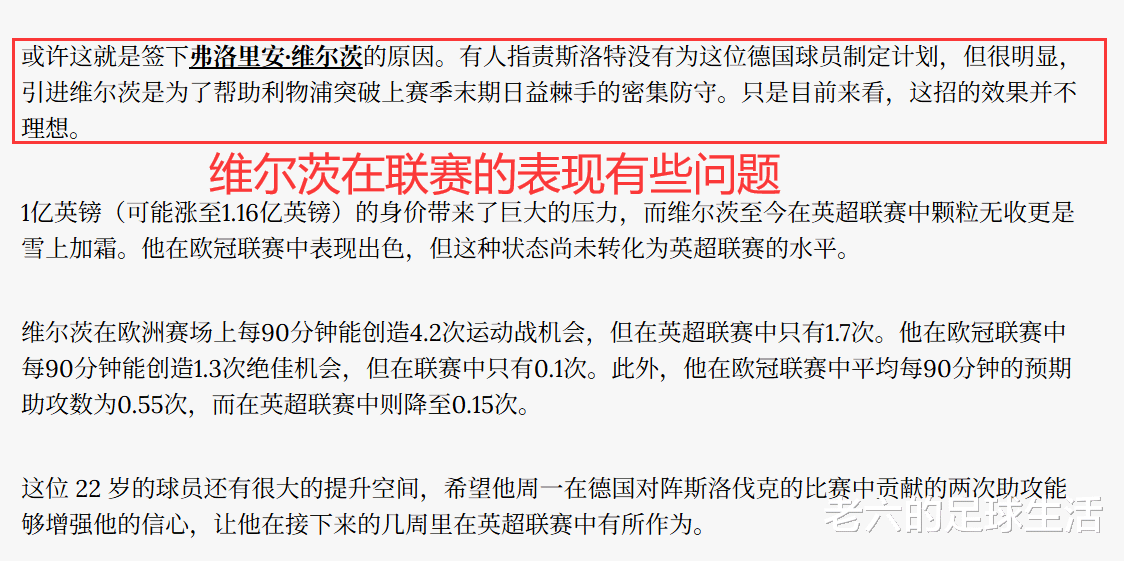 他们签下维尔茨更多是想让他帮助利物浦突破对手的密集防守,只是现在来看他的状态难以做到。