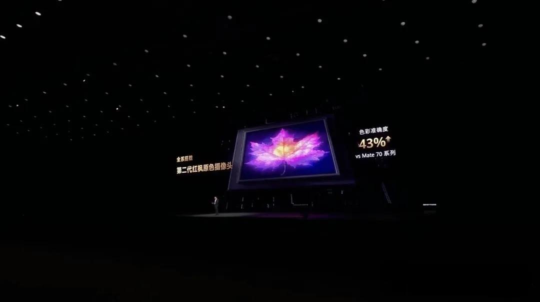 落在具体的摄像头上,第二代红枫原色摄像头系统。色彩准确度较Mate70系列提升了43%。