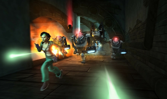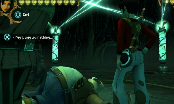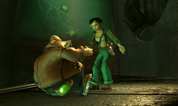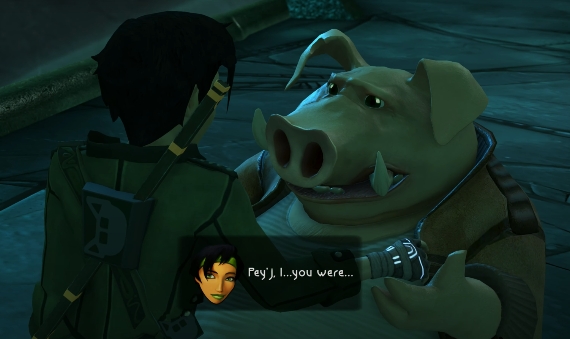 当然,游戏不是电影,前者更具互动性。这种根本差别也渗入《超越善恶》的演出。在游戏后期,玩家将使用“交谈”按键,让Jade试图唤醒自己的挚爱亲友(“交谈”按键,一般情况下,仅意味着“与NPC进行交流”)。