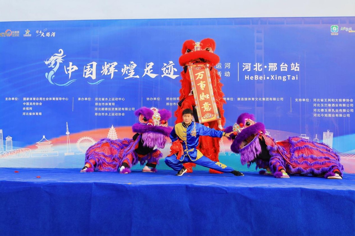 开幕式现场,热闹氛围提前拉满,一系列极具邢台地域特色的文化表演节目依次上演。锣鼓声中,两头醒狮演绎灵动之姿,朱红与绛紫的狮身随鼓点腾跃翻转,引得台下观众阵阵喝彩;太极表演者诠释和谐之道,动作行云流水,推掌、转身、收势间尽显刚柔并济;随后的舞蹈演出舞步利落又不失柔美,简单明快的动作让现场气氛持续升温。生动的表演将现场气氛推向高潮,也为即将开启的龙舟赛事注入满满活力。
