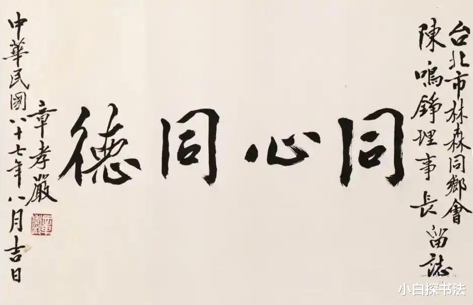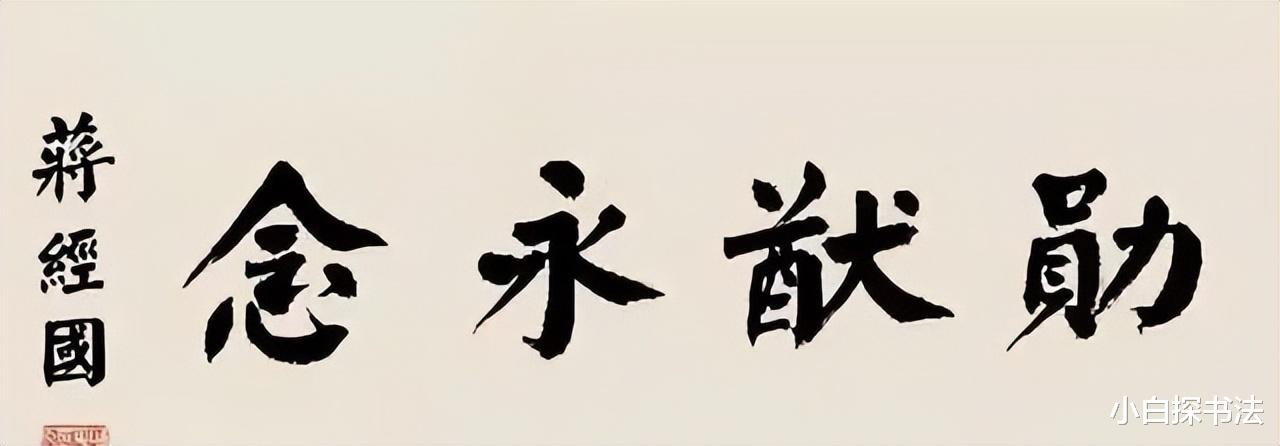 而相对比蒋中正的书法,蒋经国的书法,却相对比来看,比较灵活一些,他的楷书还是值得推崇的,不仅将颜真卿楷书的正大气象,表现的十分完美,而且你会发现,还淡化了横轻竖重的特点,线条的表现,粗细上很是均匀,并且,还是一种非常浑厚的状态。