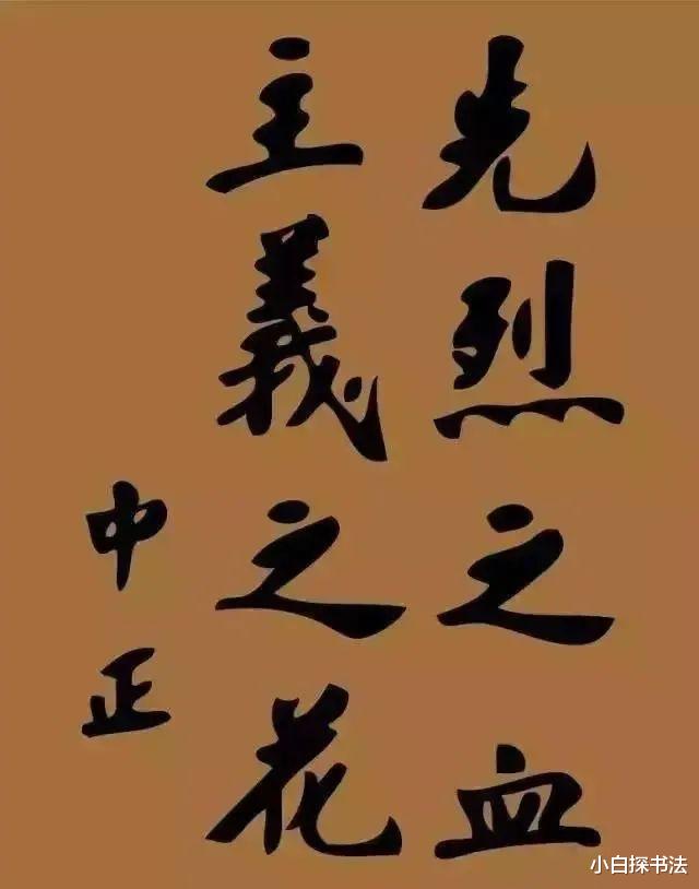 从线条上的特点上看,有了一定的柔韧度,同时,线条上也富有一定的弹性和韧劲,别具一格,不仅如此,字形上,不像蒋中正的楷书那样,统一划一,而是一种随字而安,因字赋形的状态。