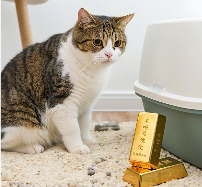 如果猫粪里能提炼黄金(先让这个假设飞一会儿),那铲屎官的日常生活会怎样?首先得给猫主子定制“黄金套餐”,喂金箔零食、金粉猫粮,喝水也要放金颗粒。其次,猫砂盆得改名“防偷窥保险箱”,毕竟那是一坨坨“流动的黄金”。最后,铲屎官的日常工作由“铲屎”变成了“淘金”,说不定还能搞个“猫粪黄金期货”这种离谱而又合理的金融产品出来。然而,事实会很快扑上来,猫粪里就算有黄金,含量也低得可怜。如果按照现在的金价计算,一坨50克的猫屎,也不过几毛钱,想要靠它发家致富,得先养一窝“产金量”比印钞机还高的猫”——那时候,猫主子肯定会集体罢工,用“绝食抗议”来捍卫自己的“排便权”。